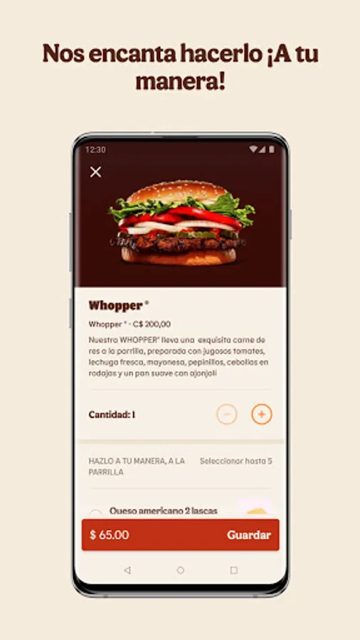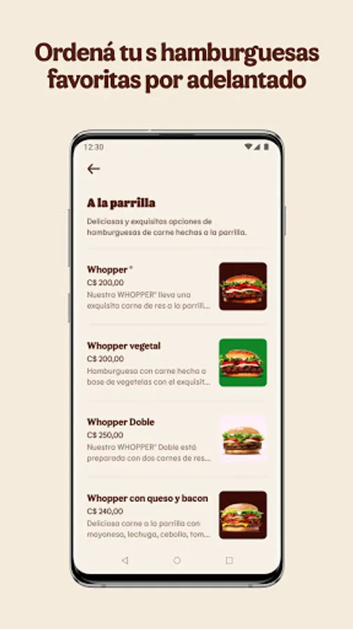 In this Burger King application, you can find our menu of grilled hamburgers and chicken favorites, you can order and pay in advance from your cell phone, you will have exclusive discounts and you can find your closest restaurant or food court.