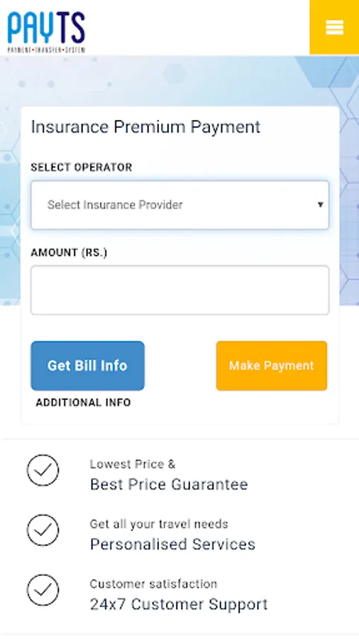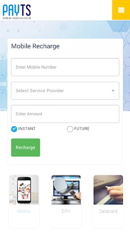 PayTS is light weight app popularly used for Mobile & DTH Recharge, Utility Bill Payments and as a Complete Travel Solution Provider for personal as well as business use to earn supplement income and/or full time business.