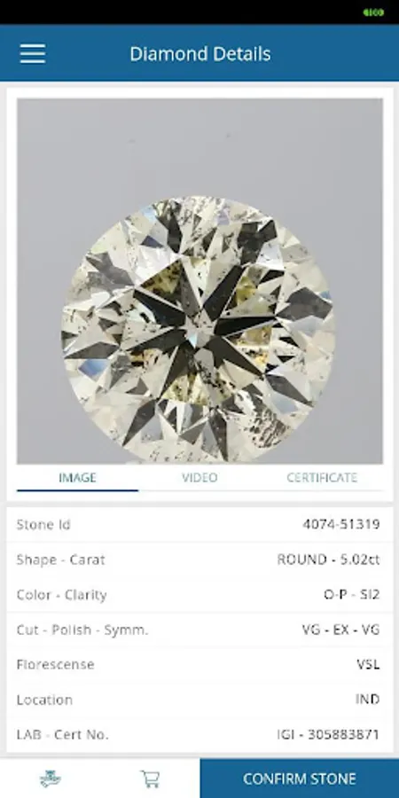 Through the app we show High-Definition Video and Image of all diamonds, so you can see diamond very accurately with all technical details.