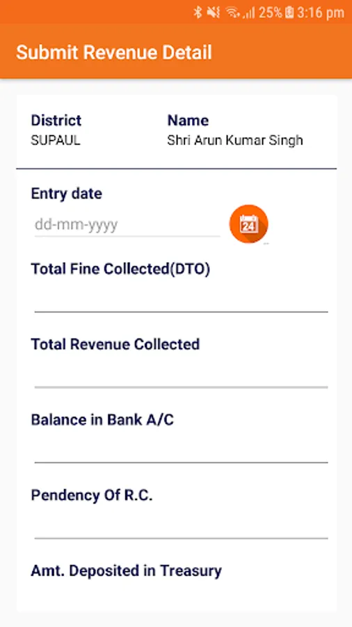 Revenue collection Mobile app is developed for the Transport Department of Bihar Government. This application is being developed for various types of users like DTO, ESI, MVI and Administrator. Here the DTO, ESI and MVI officials can send revenue collection data to the server daily and see the various types of reports sent by them and administrators can see all reports regarding the revenue collection of Bihar.