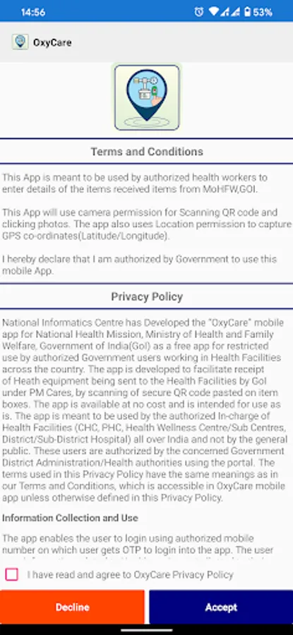 The user are whitelisted on the portal https://oxycare.gov.in by the State/District administrations. Each Health Facility consignee is updated on the portal only then the user will be able to login in the app.