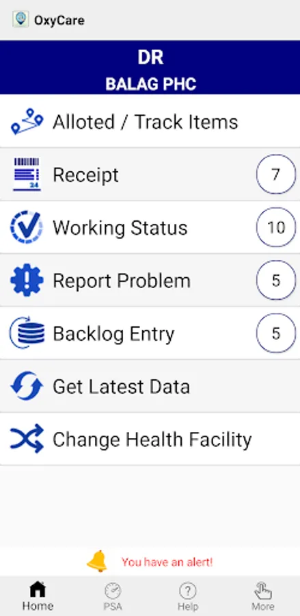 The user can Report Daily/Periodic working status, Report Problem (if any), check stock or can track shipped items for the Health Facility. In case any PSA is installed in the HF, the live PSA Dashboard is also available.