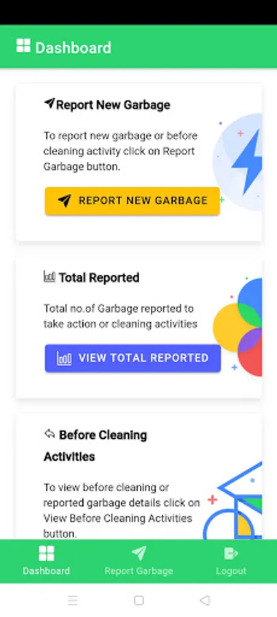 Namma Swachh is an android application where citizen can upload the photos of before cleaning the garbage (waste to be thrown out to dust bin) from their ward of the city or village of the gramma panchayat.
