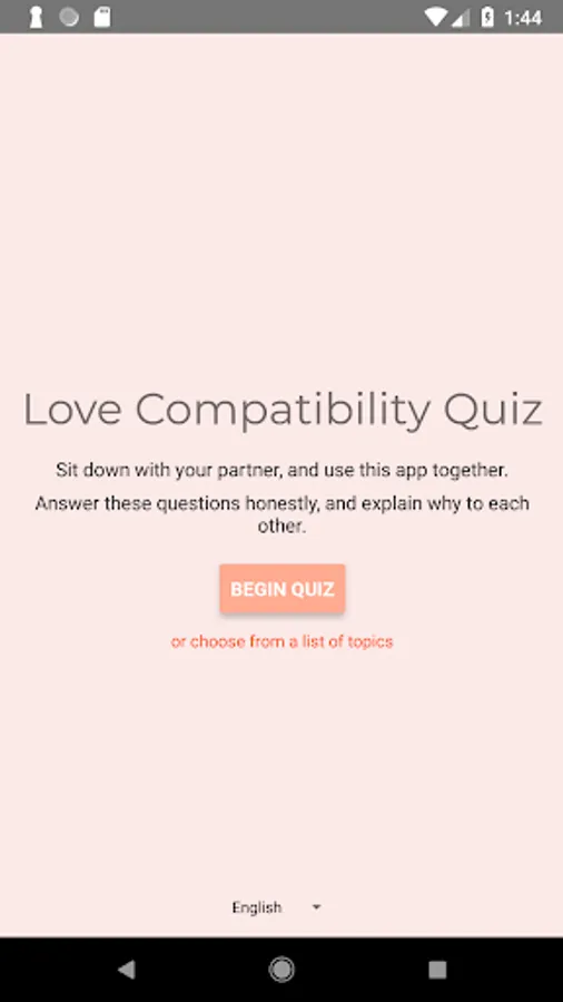 This app will help partners get to know each other better. Use this app along with your partner and answer each question truthfully, and you'll learn more about each other.