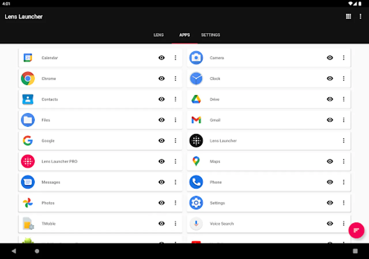 Lens Launcher is a unique, efficient way to browse and launch your apps.
