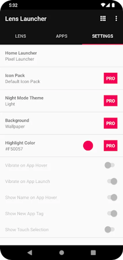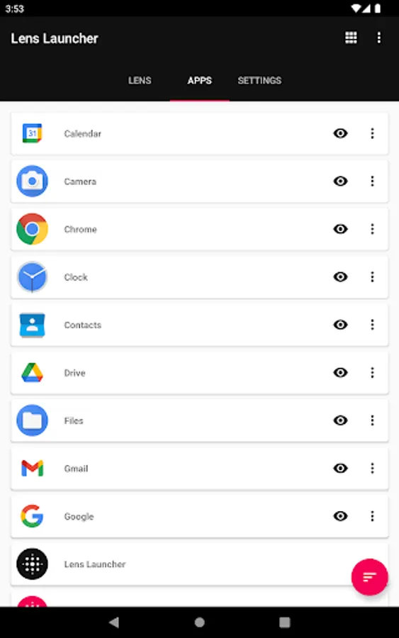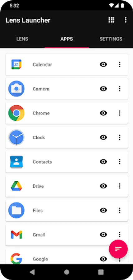 Instead of scrolling long lists or swiping through multiple pages, Lens Launcher implements two unique features: