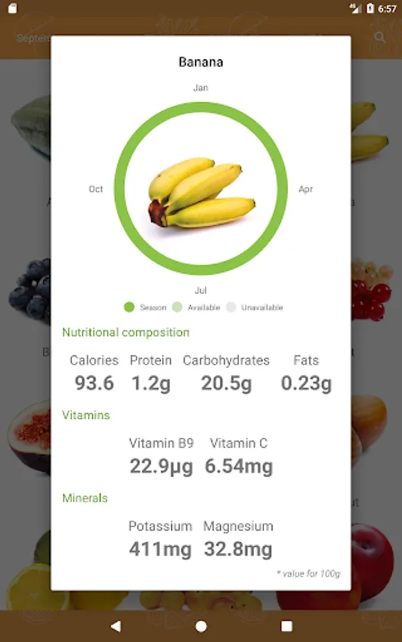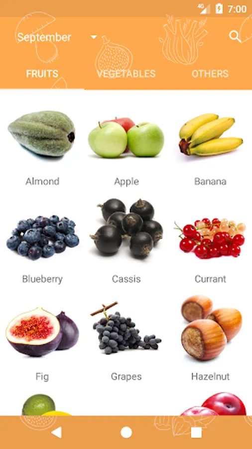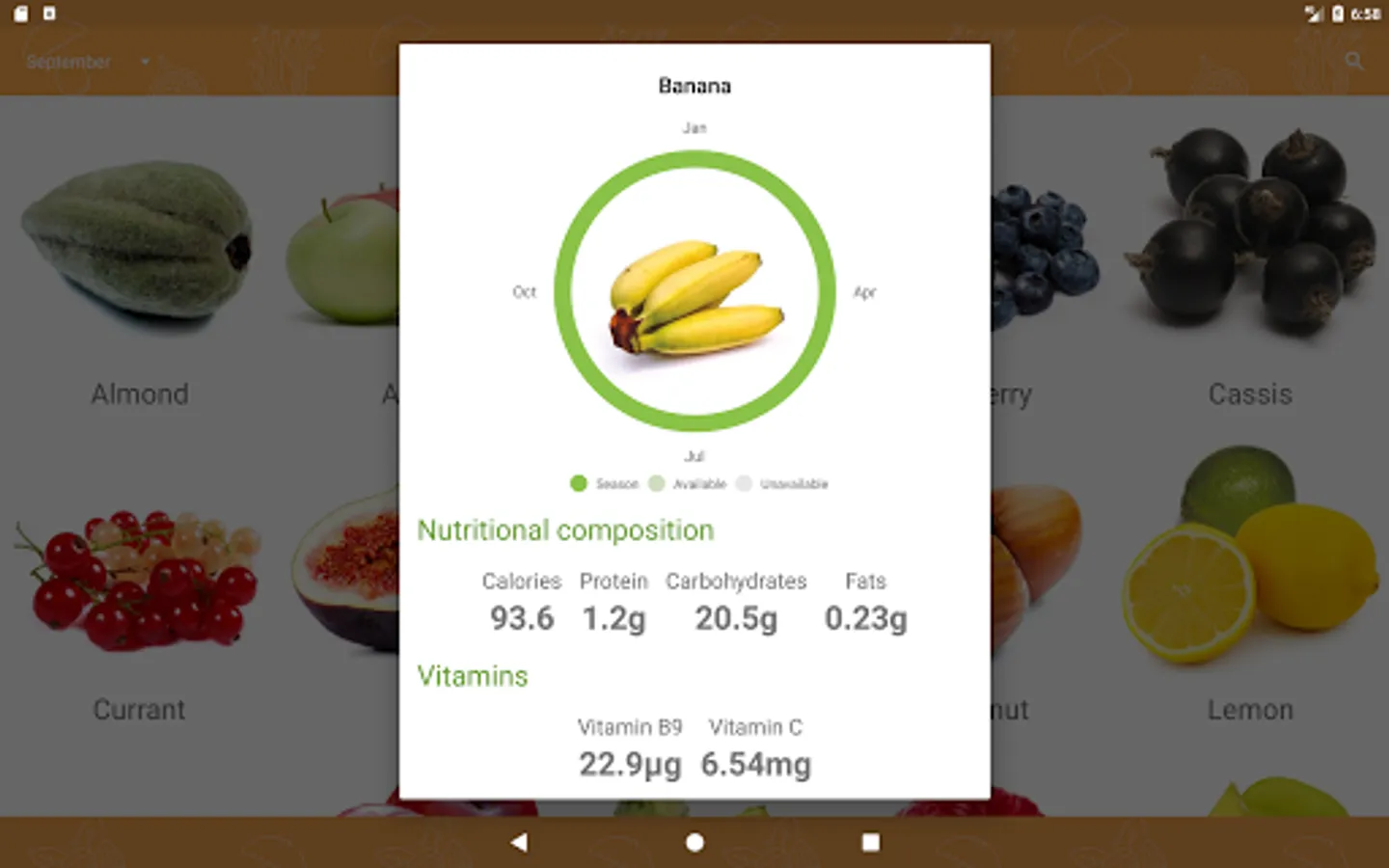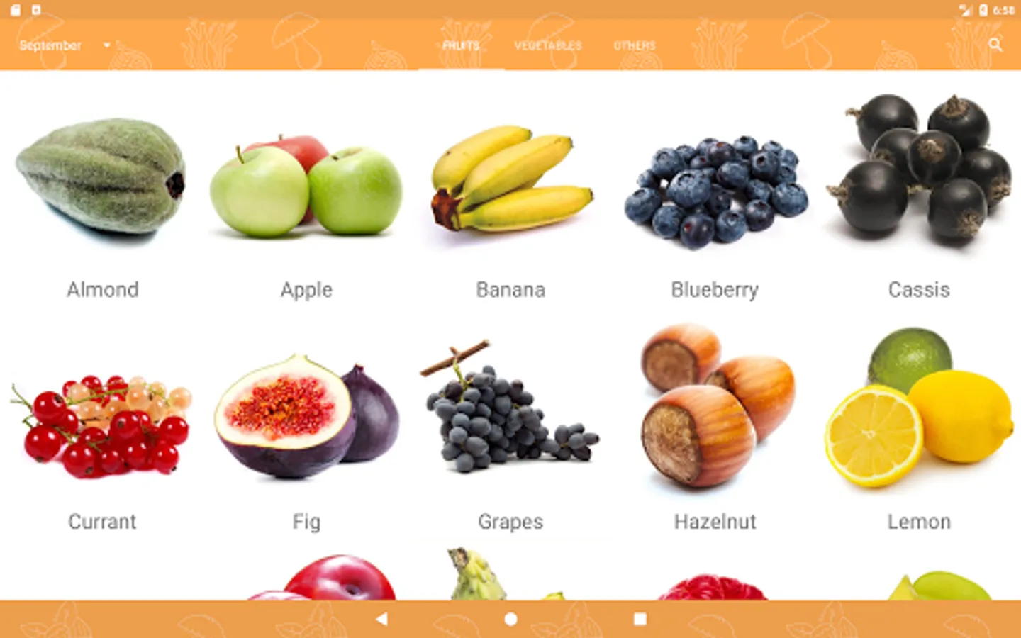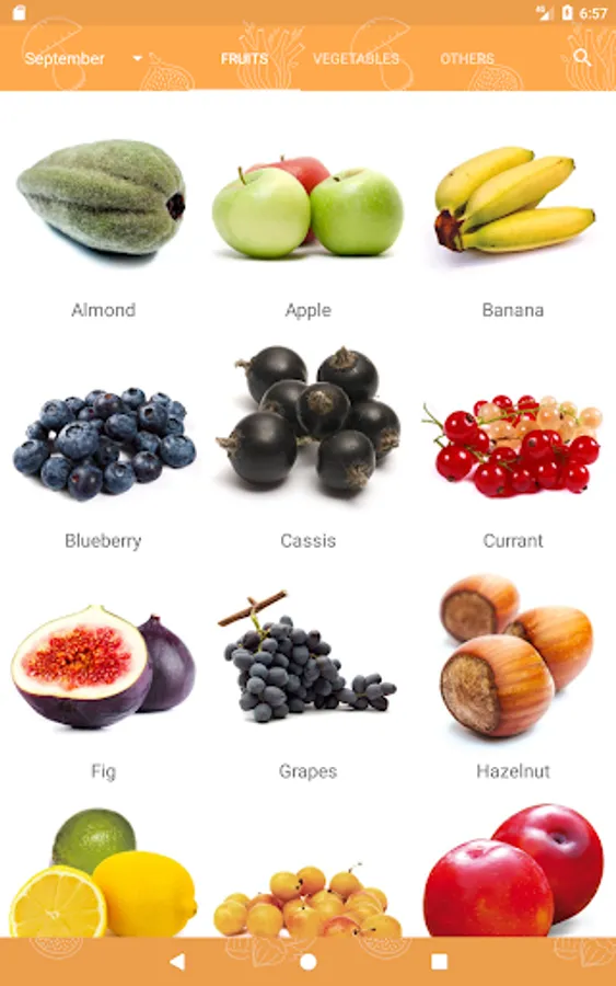 Saison displays all seasonal fruits and vegetables, filtered by month.