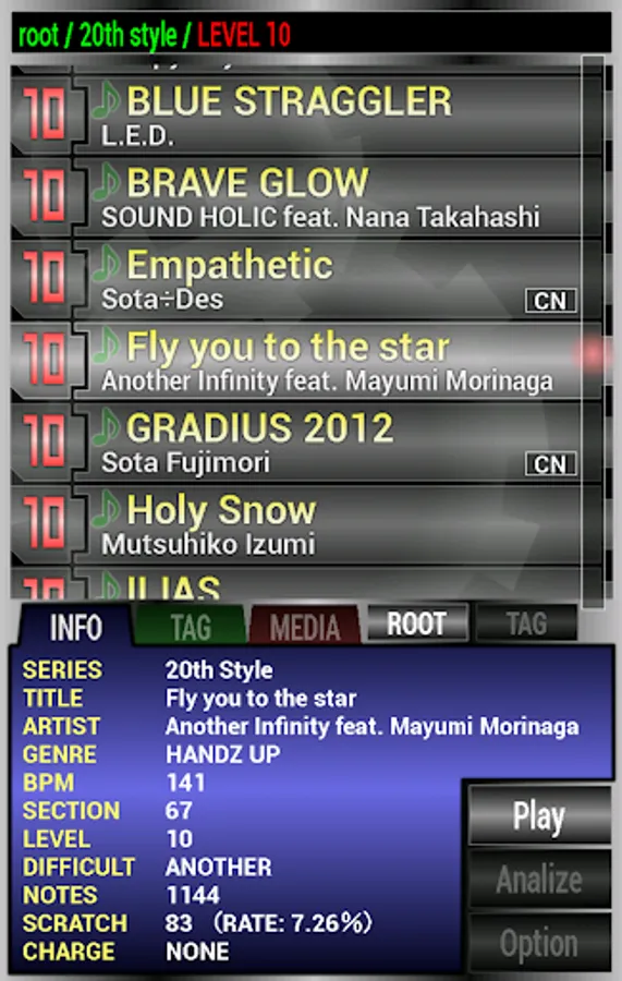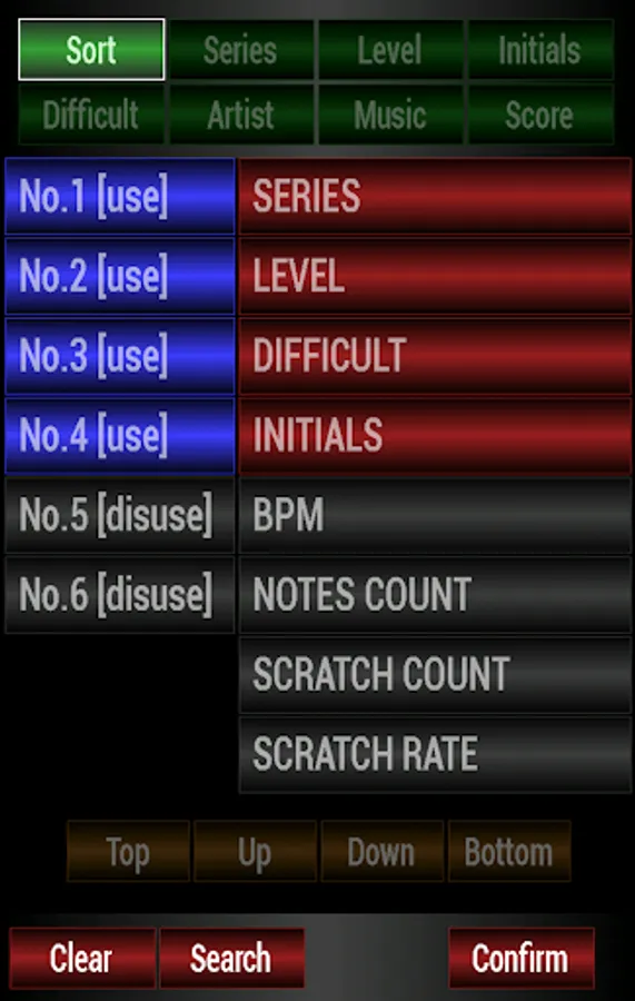 Series, level, degree of difficulty, the number of Notes, the number of scratches, you can search for music by BPM, such as every classification