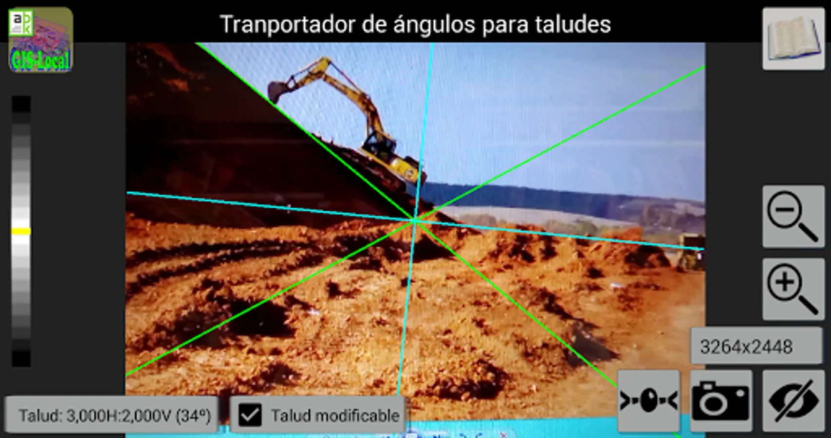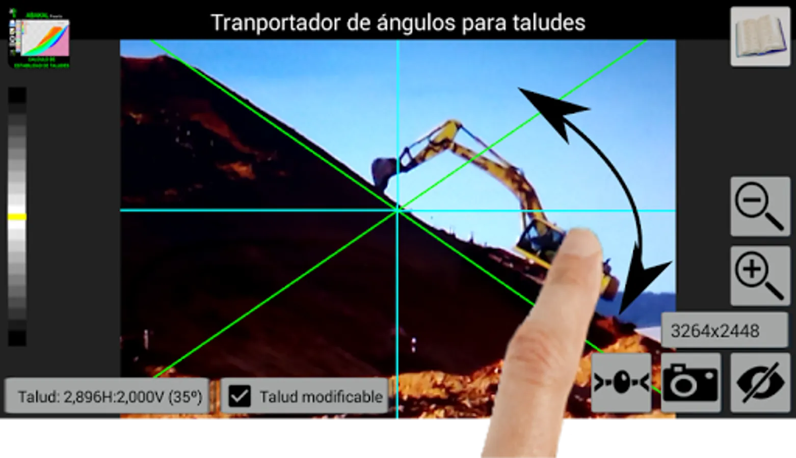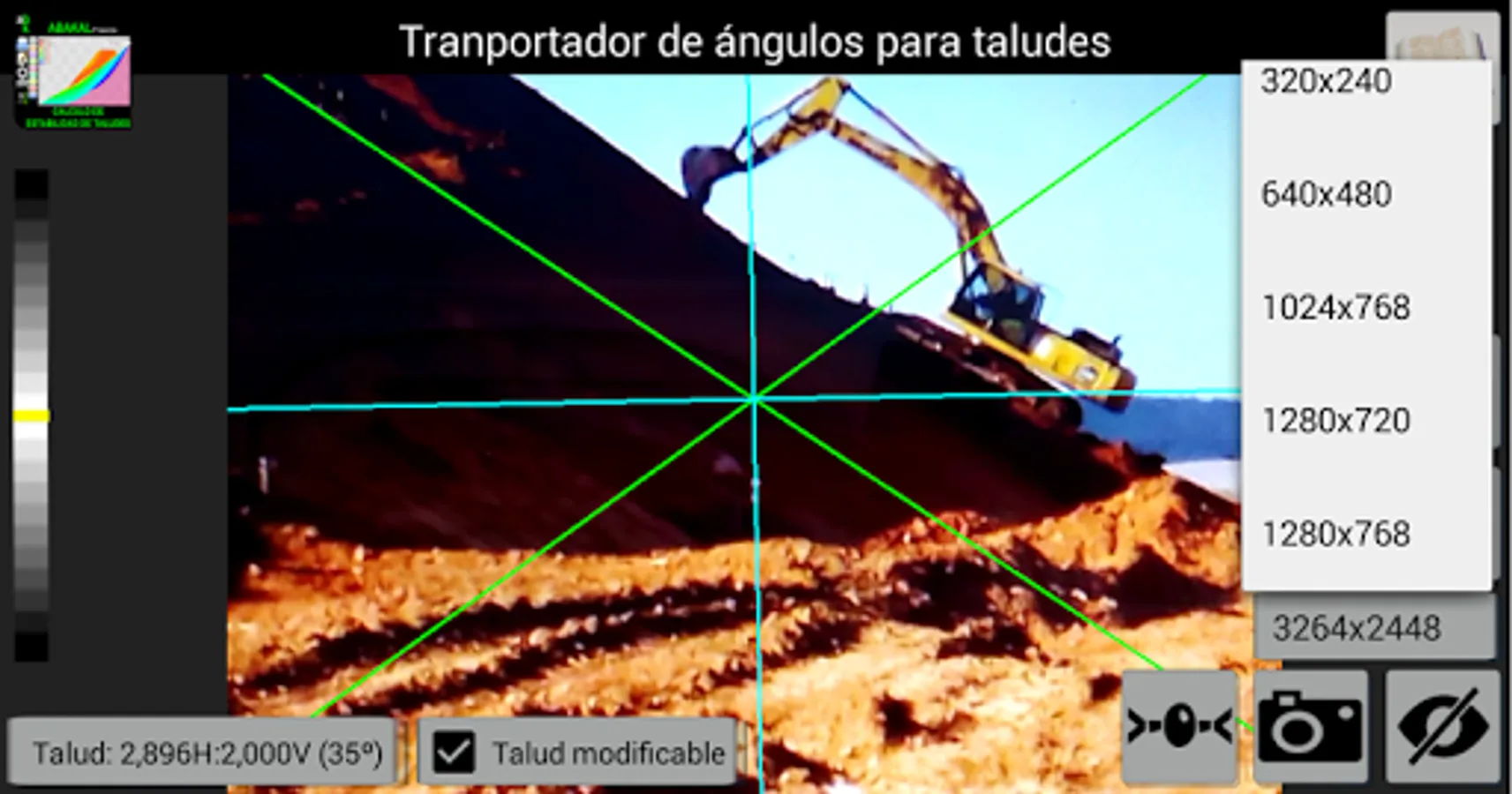The program allows to set and display the slope, sobrimpresionarle with the required angle (or measuring the actual angle)