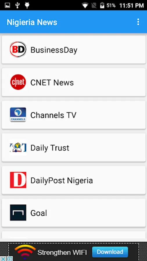 It’s a fast an easy way to read the top headlines from Nigeria. With Nigeria News you can quickly read the breaking news at any time. It gives you access to the most popular newspapers from Nigeria and it’s totally free to Nigeria.
