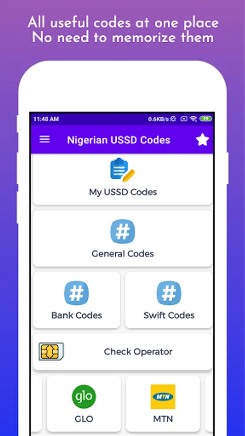 Now, you don't need to memorize all codes again, this is filled with all Naija bank codes. With this app, you can get all subscription codes, recharge codes, bank transfer codes, etc.