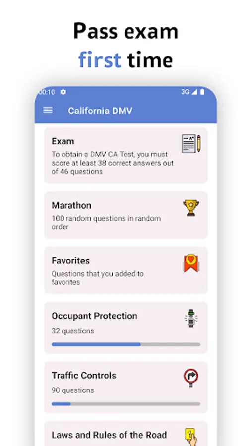 Our app helps you prepare and successfully pass California DMV certification exam: