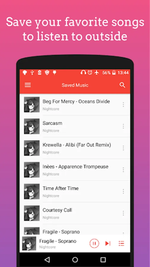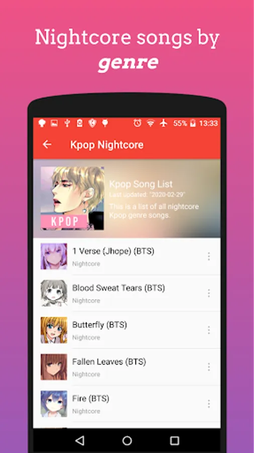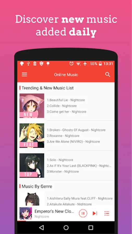 🎧 Nightcore Songs Player 🎧 is the best nightcore music app ever released for all anime and nightcore music lovers with over 7500 songs and musics available and still counting.