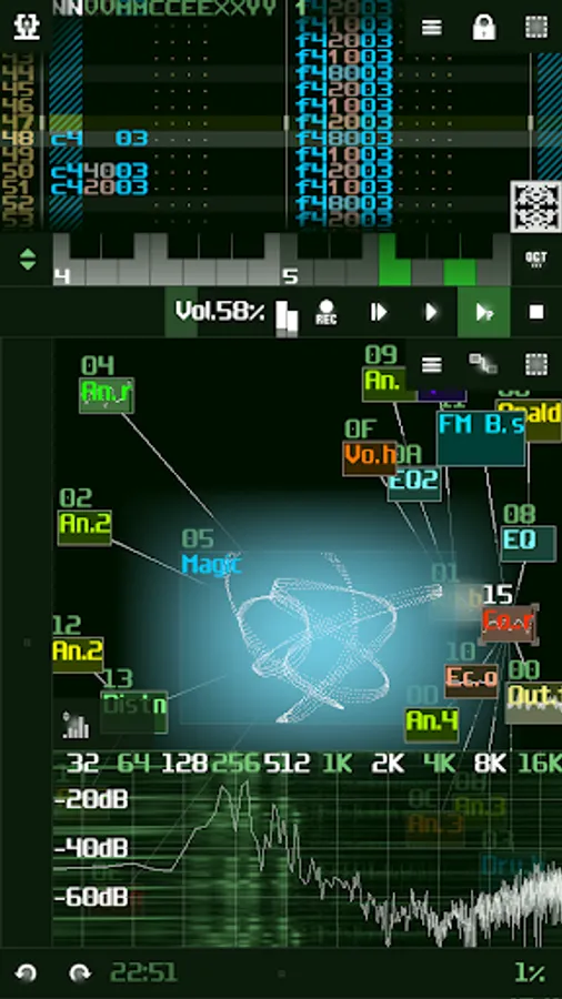 SunVox is the most powerful music creation tool for Android. It is a small and fast cross-platform modular synthesizer with pattern based sequencer (tracker). You can read more info about the music trackers here: http://en.wikipedia.org/wiki/Tracker_(music_software)