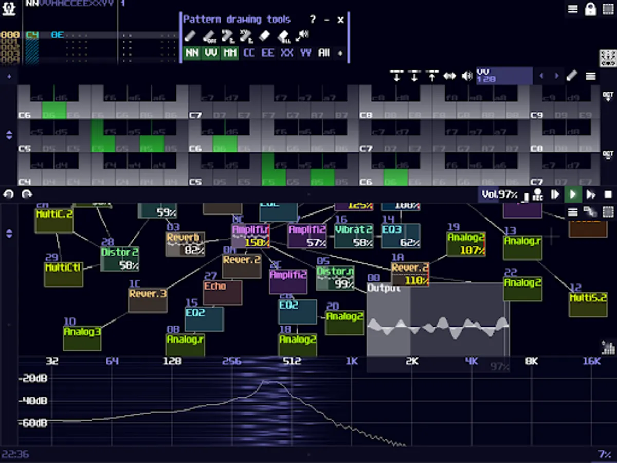 • Generative music features: random selection of notes, random values of controllers, probability effects.