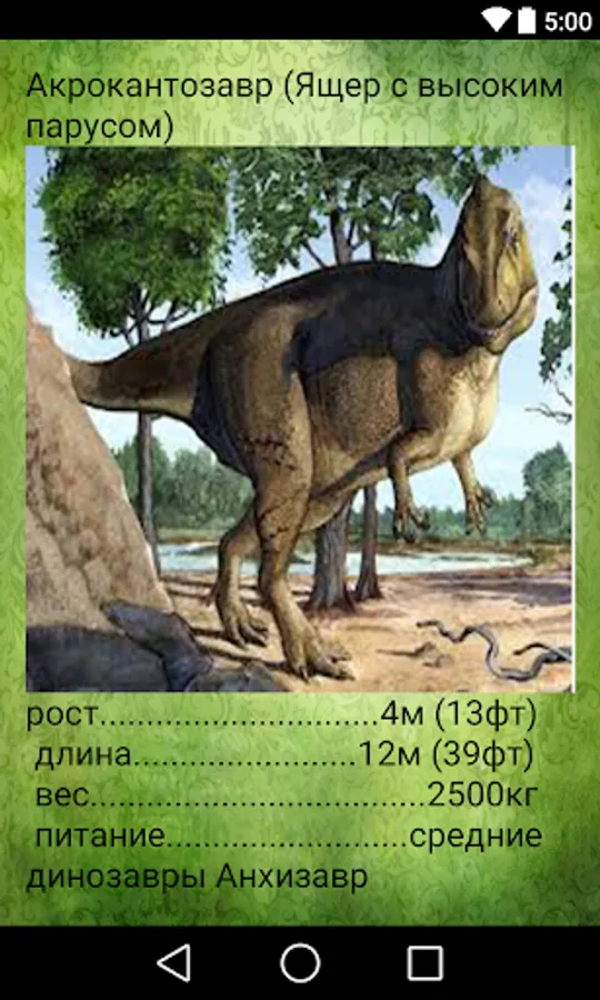 In this application I will try to describe the known species of dinosaurs and there will be 4 sections:
