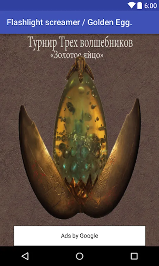Flashlight - krikun..dlya all fans of the movie about the young wizard and his friends, head to your phone test "Golden Egg", and notice them you can illuminate your way, and make fun of his friends ...