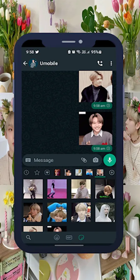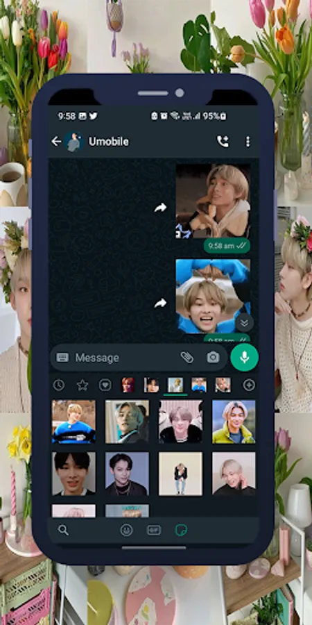 6. You will see a new sticker icon at the bottom and can now use this sticker pack and express your love !!