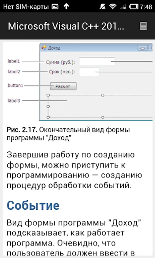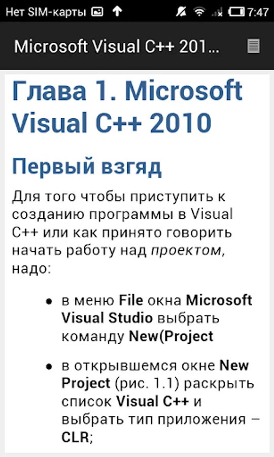 The book is a concise practical guide to programming in Microsoft Visual C ++ 2010. In it in an accessible form sets out the principles of visual design and event programming, a concrete example shows how to create a simple program. Adequate Beginners volume describes the development environment and core components.