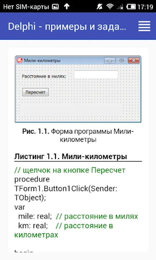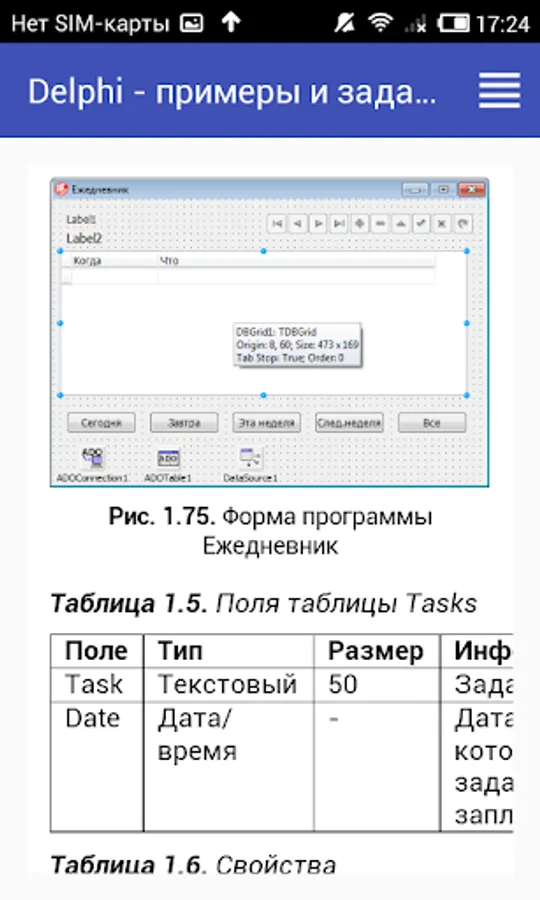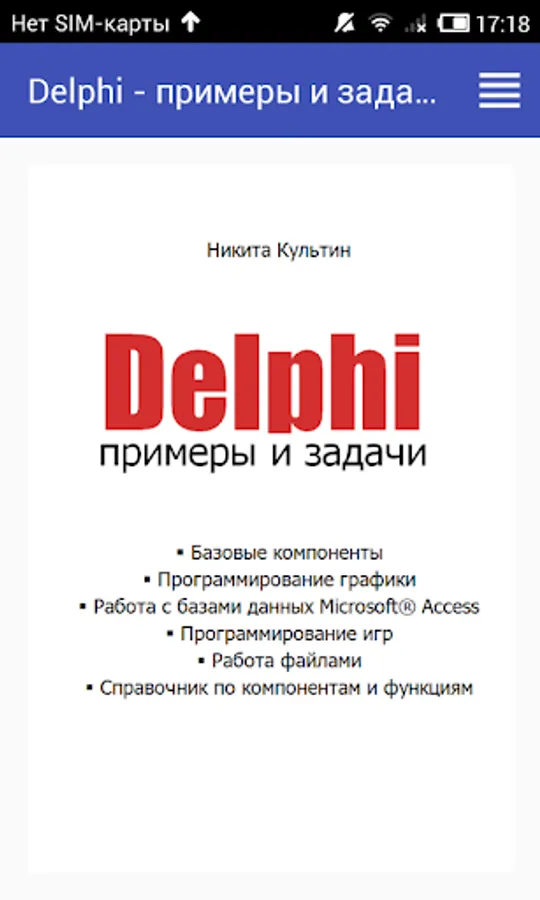 The book is a collection of well-documented programs for Windows, implemented in Delphi-based library of VCL components. Examples of varying degrees of difficulty - from the simplest to program graphics, sound, and databases - demonstrate the purpose and possibilities of the base VCL components, the components of access to databases, working with graphics and files. It contains a quick reference guide - a description of the most commonly used features and functions.