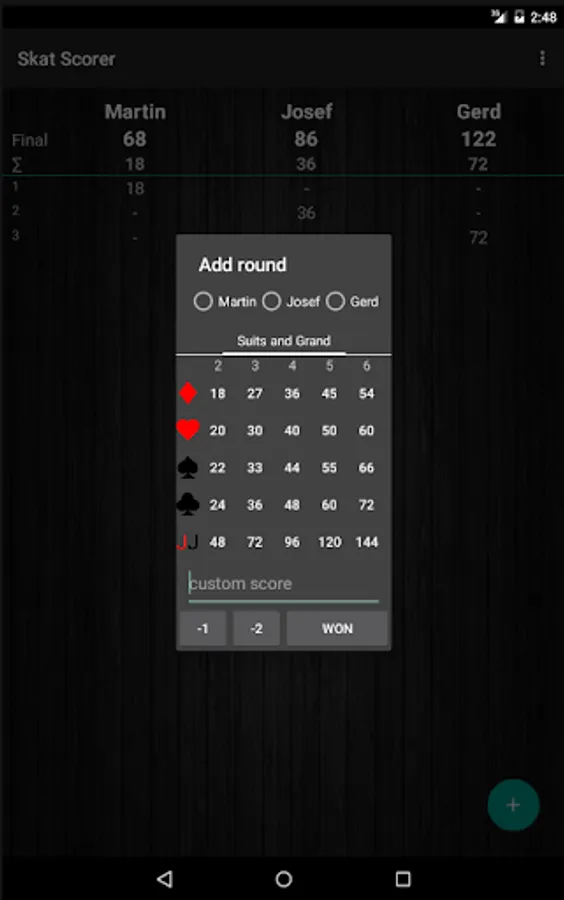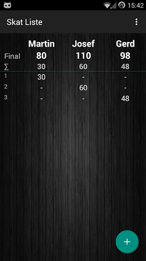 Skat Scorer helps you to keep the score list of your skat match. Moreover, the score sum and the final score (Fabian Seeger) of each player are shown permanently.