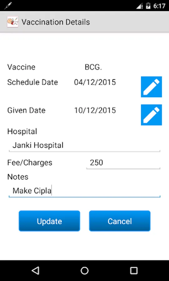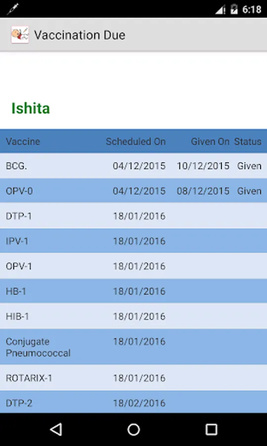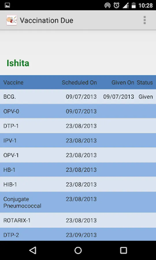 Child Vaccination Schedule helps you to track vaccination of your child. It gives remainder alert on scheduled date about vaccination due.