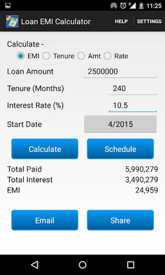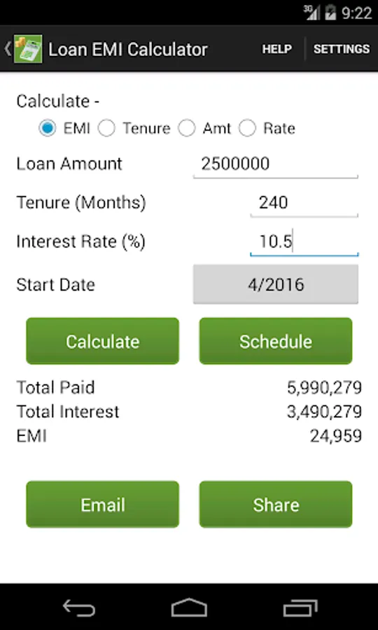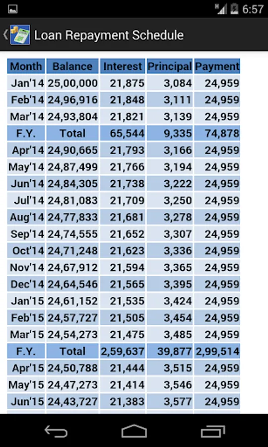This calculator helps to quickly calculate EMI (Equated monthly Installment) of home Loan, Car Loan or Personal Loan. It also shows loan repayment schedule with total interest paid and total principal amount paid at the end of every financial year.