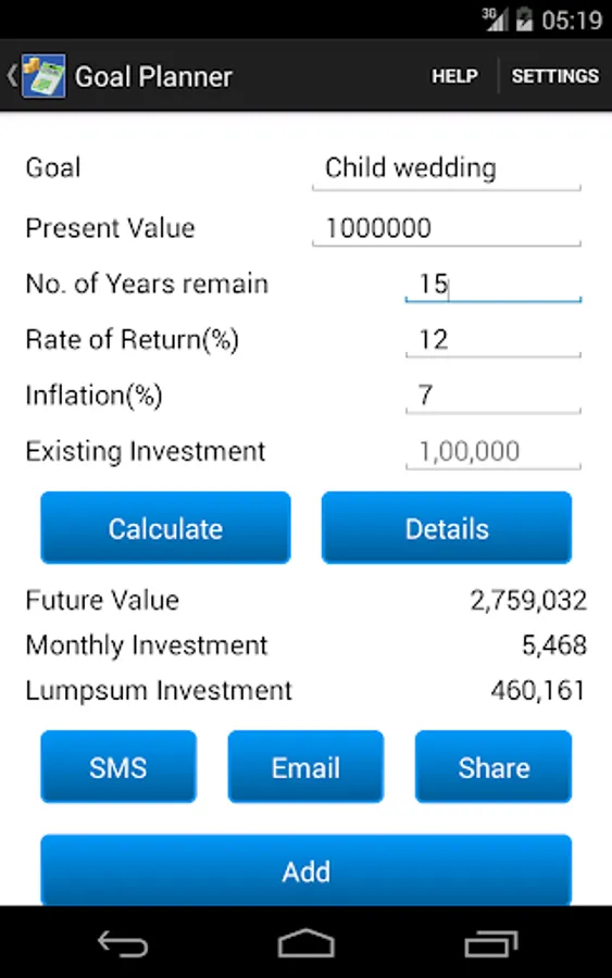 Goal Planner will help you to plan for any financial goals like Child Education or Child Marriage. It calculates the monthly investment required for achieving the goal. You can give the goal present value, No of Years remain, Expected Inflation and rate of returns on your investments.