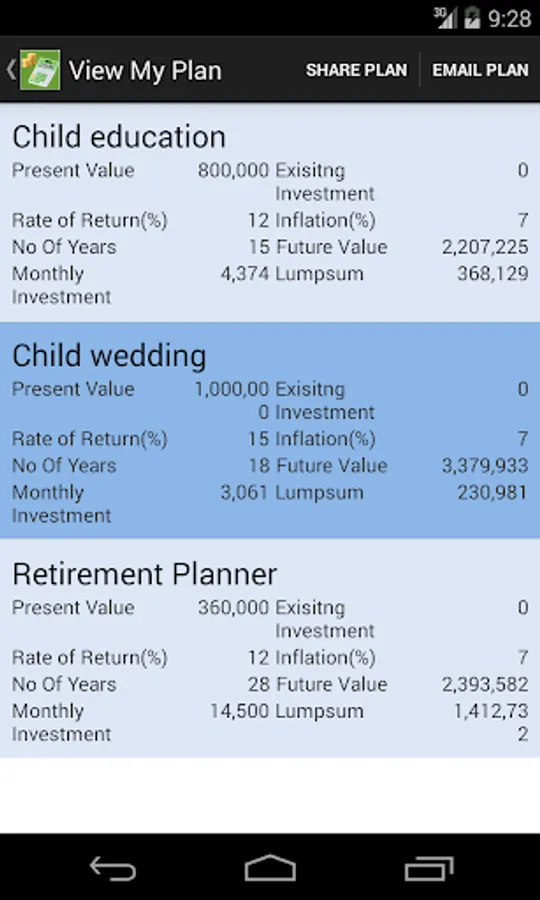 The Financial Planner helps you to plan for your long-term financial goals like Child Education, Child Marriage and Retirement. It helps you assess how much you should invest every month to get a desired amount at the end of an investment period. It helps you to calculate the future value of SIP (Systematic Investment Plan) Payments or to quickly calculate EMI (Equated monthly Installment) of home Loan, Car Loan.