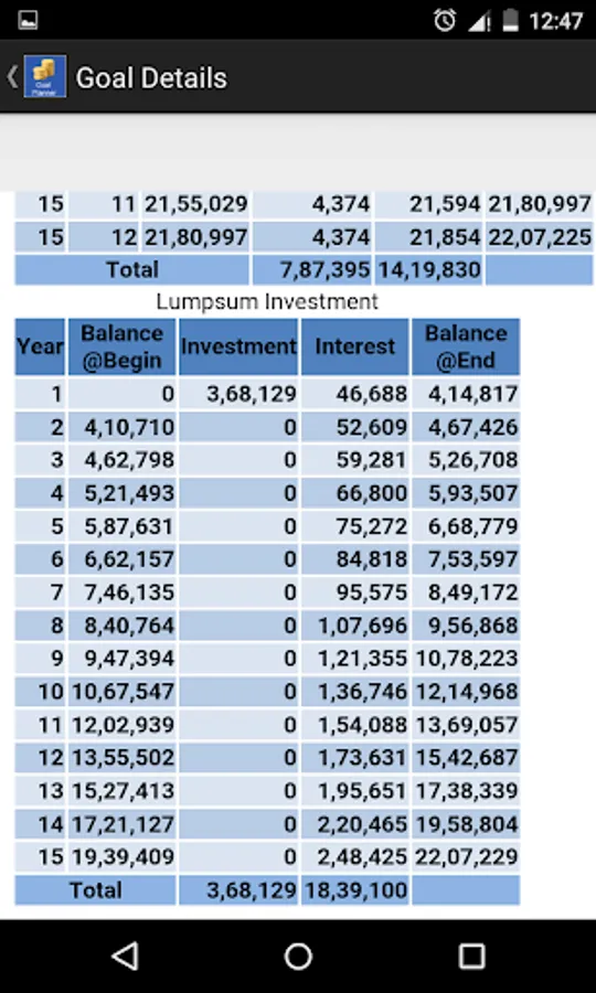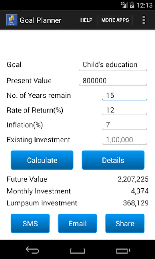 - Gives Future value of goal, monthly investment required or lump sum investment.