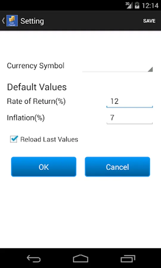 - Setting for Currency Symbol, Default Rate of Return and Inflation