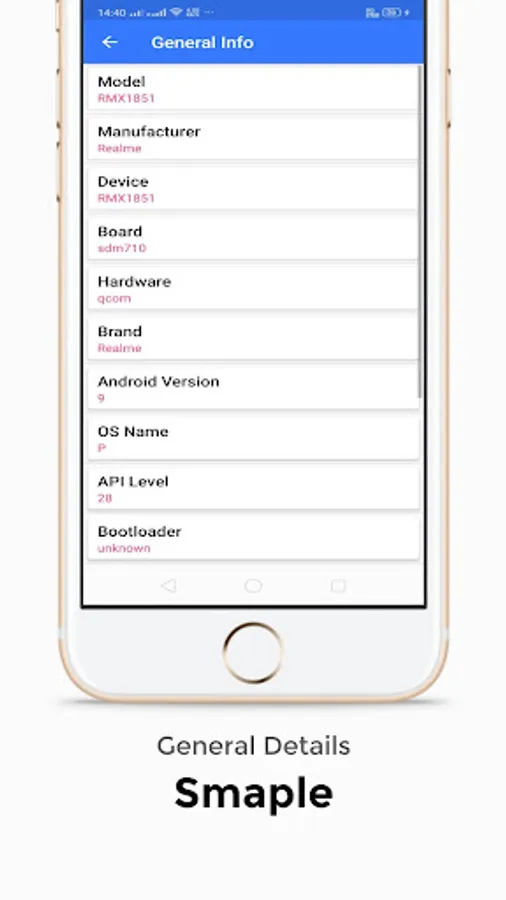 Like General Information, Display Resolution, Battery Information, User Apps means how many apps installed in your Mobile Device, System Apps(Know your Mobile Defaults Apps), Memory Details (RAM Details, ROM Details & JAVA Heap Details), CPU Information And Sensors Details(How many Sensor Inbuilt in your Mobile).