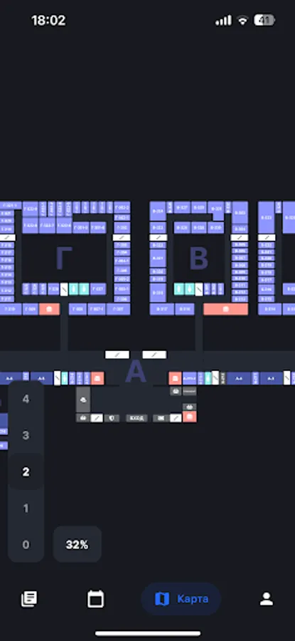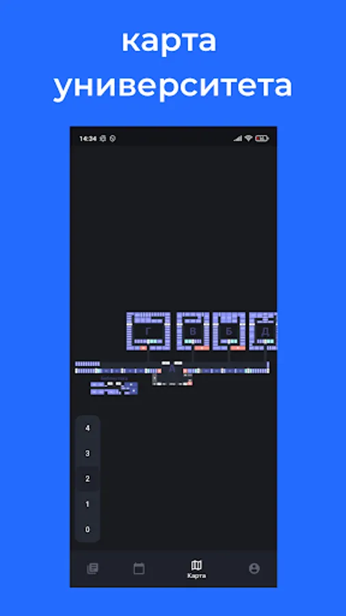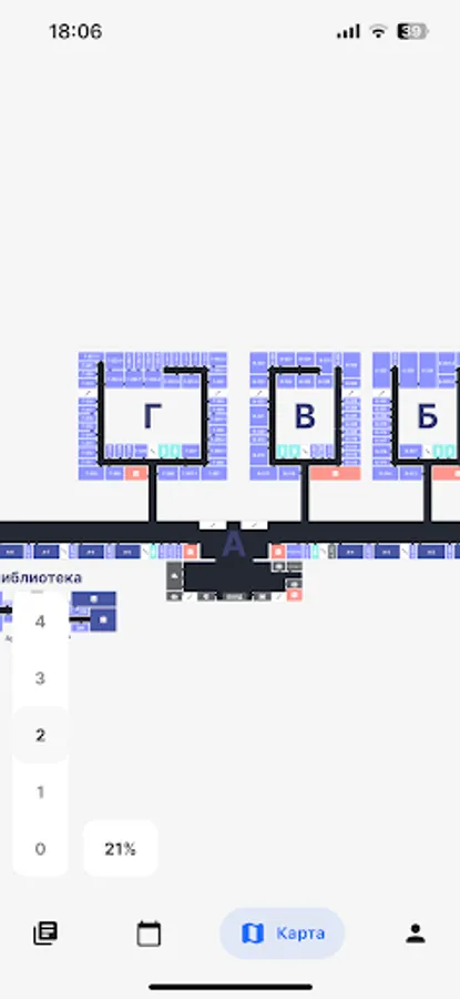 A diagram of the university, highlighting important facilities in the building. For example, shops and cafes.