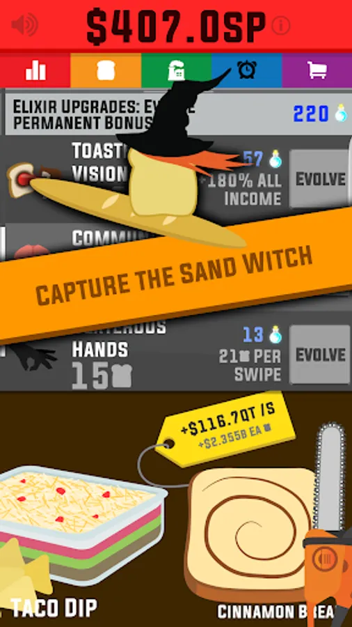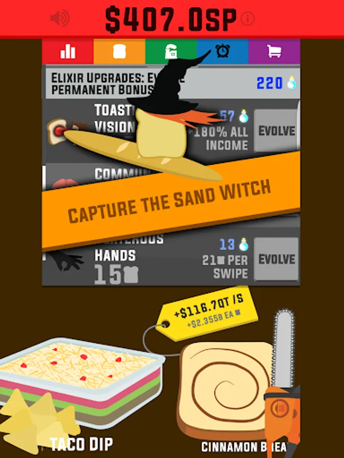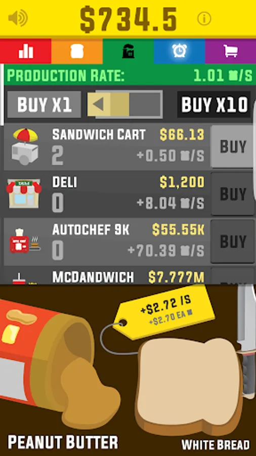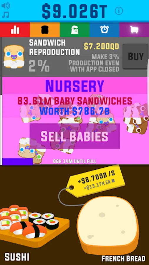 Use your astronomical profits to build up a sandwich empire, from taking over your local McDandwich to establishing interstellar dominance in the galaxy.