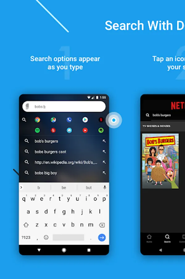 • Search with dozens of apps using Google Autosuggestions