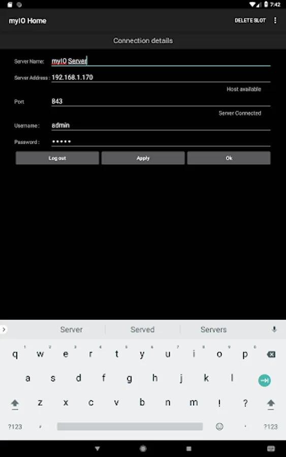 If You have more myIO server, you can change the active server with one click.