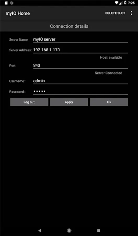 You just have to enter your myIO servers address, port, username and password.