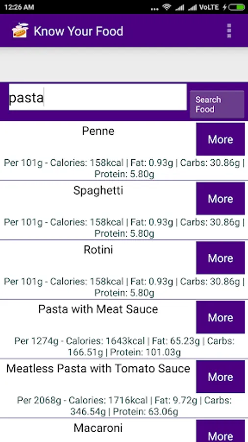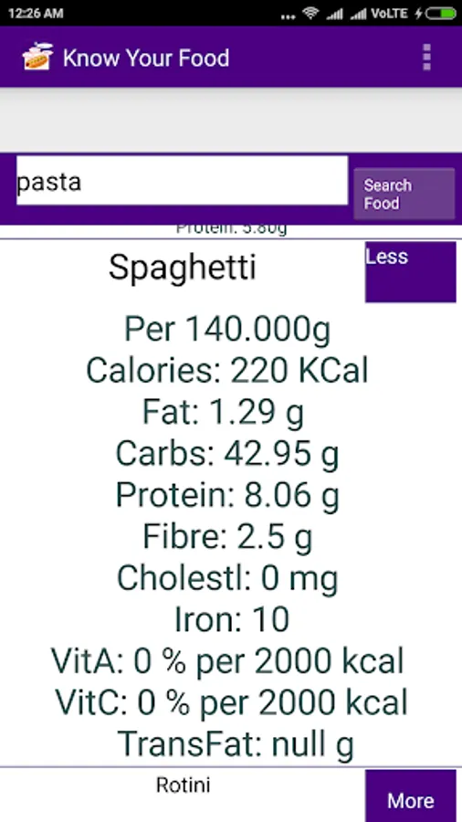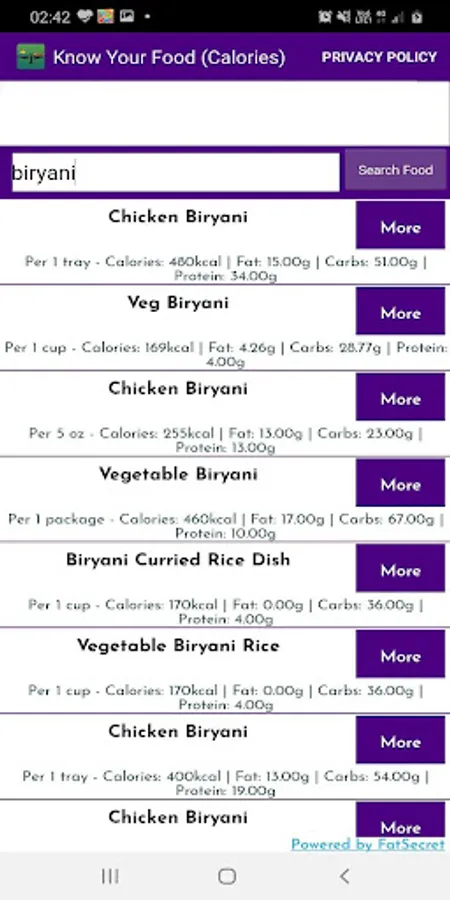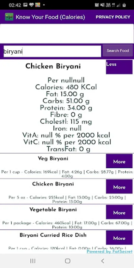 Shows accurate energy values of most popular food items which could be cooked food or raw food