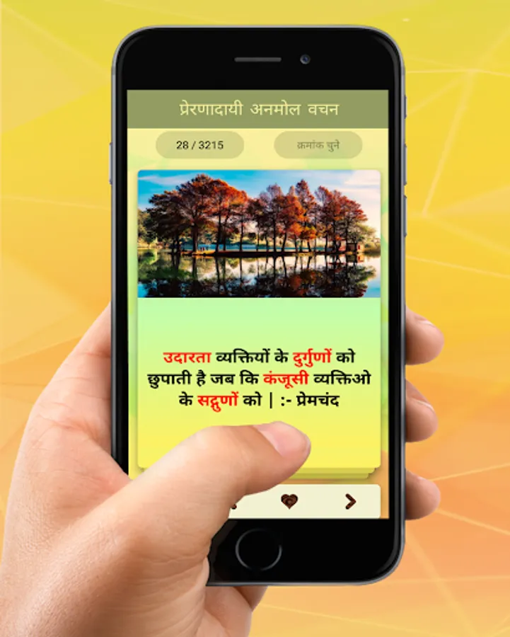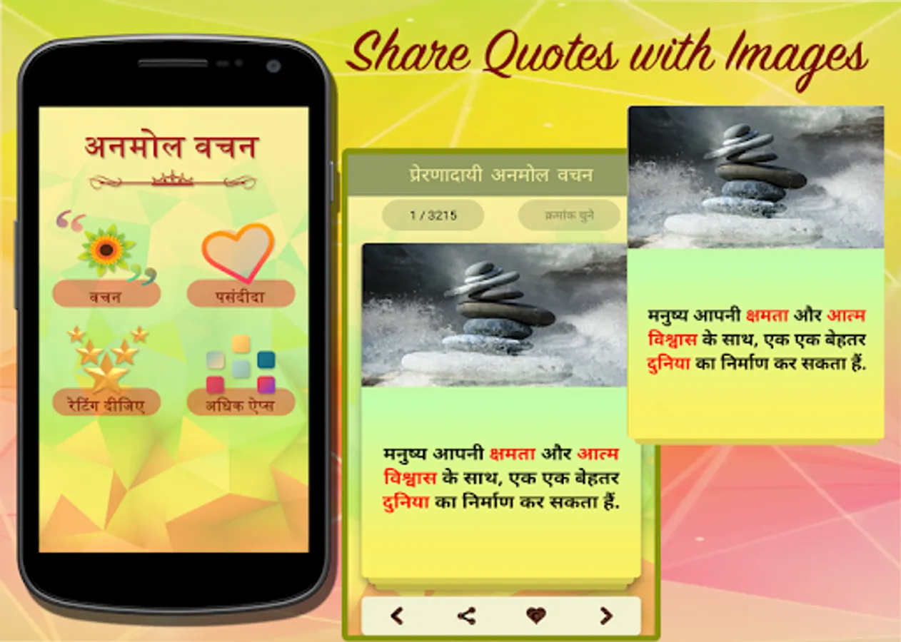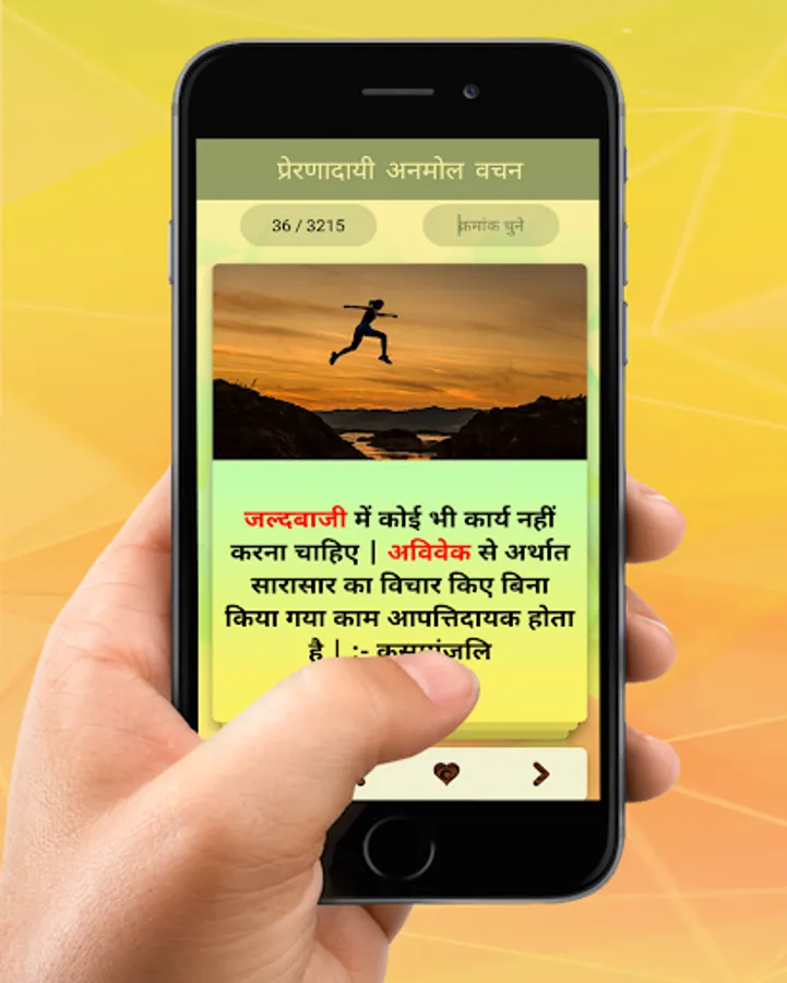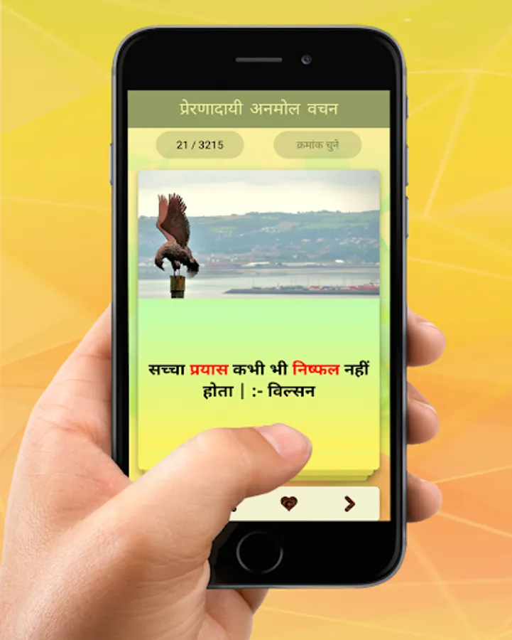 This application present large and best collection of Inspirational quotes in Hindi Language.Be motivated or Inspired , and motivate others by reading and sharing motivational and inspirational quotes.