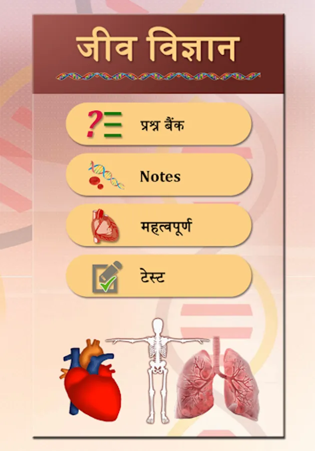 This is a complete Biology study application which covers important topics with Notes and MCQ for competitive and other exam preparation in Hindi Language.