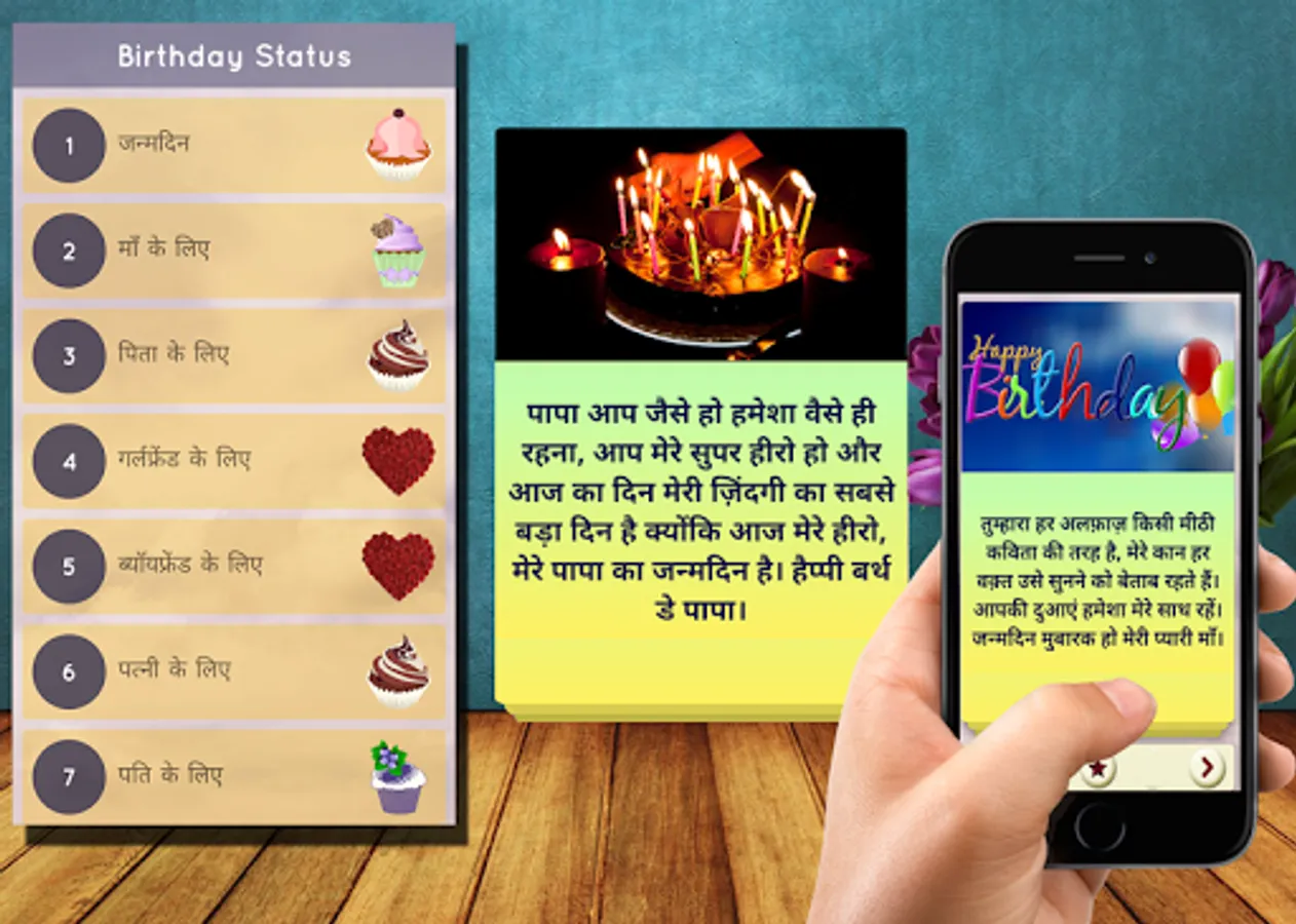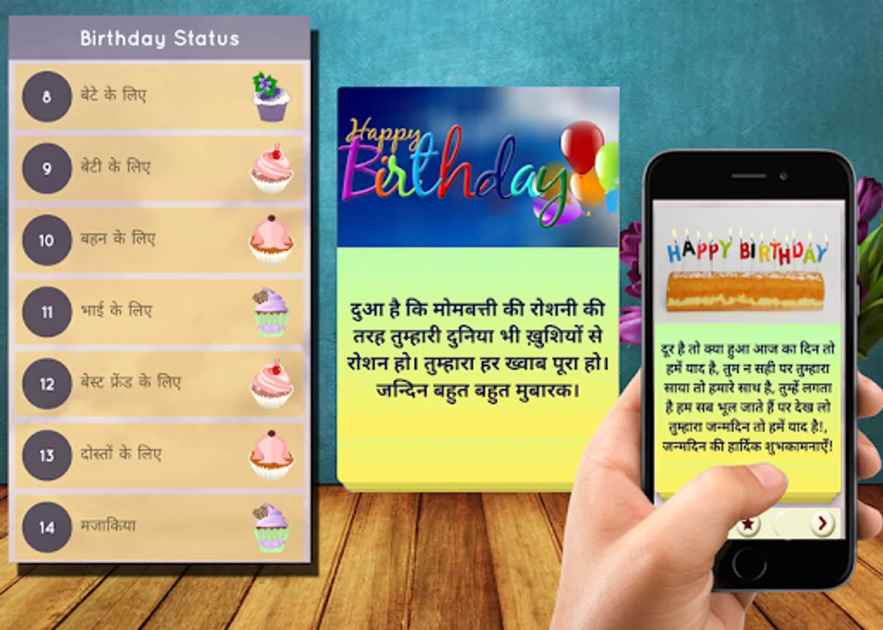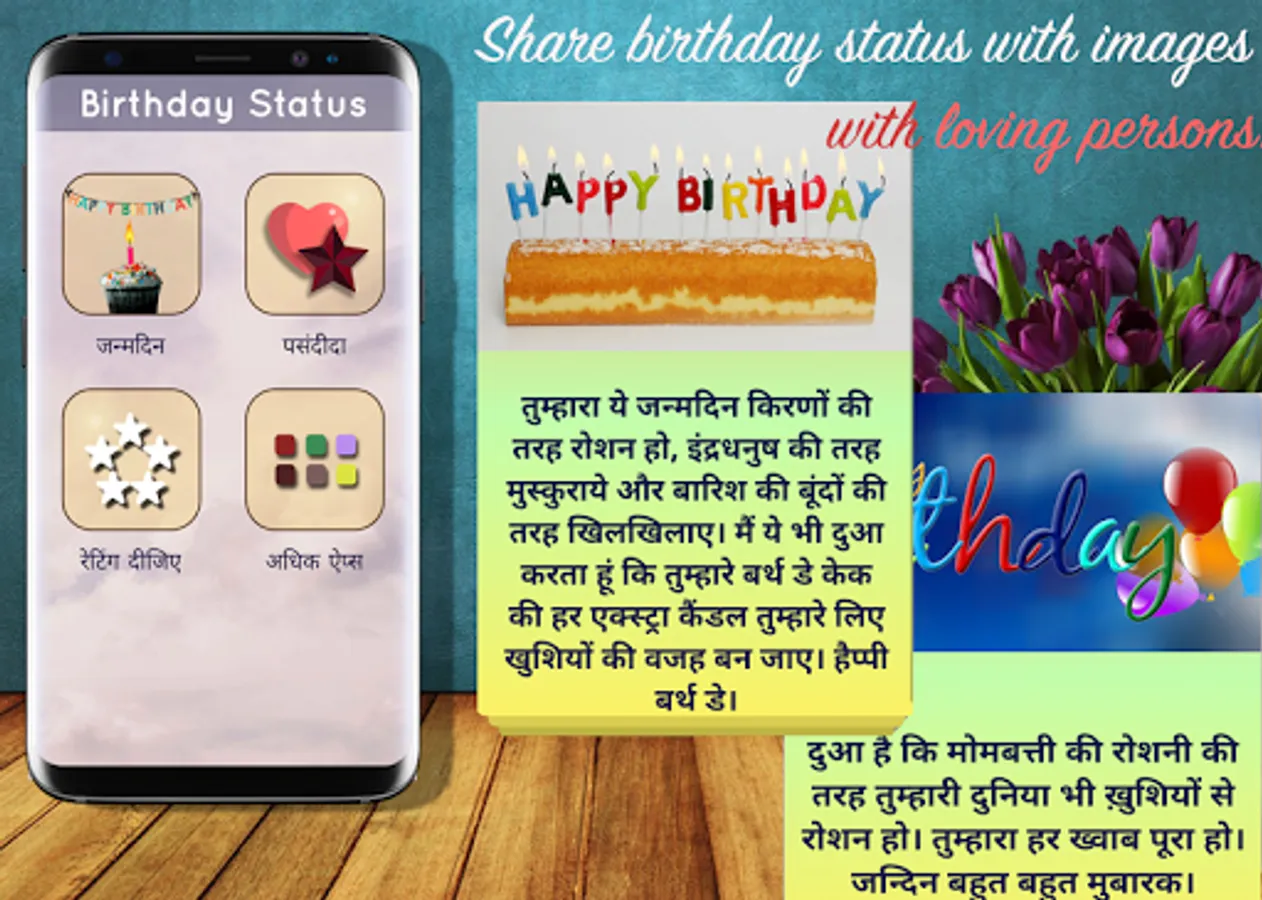 This application present large collection of Birthday Status or Message in Hindi Language.