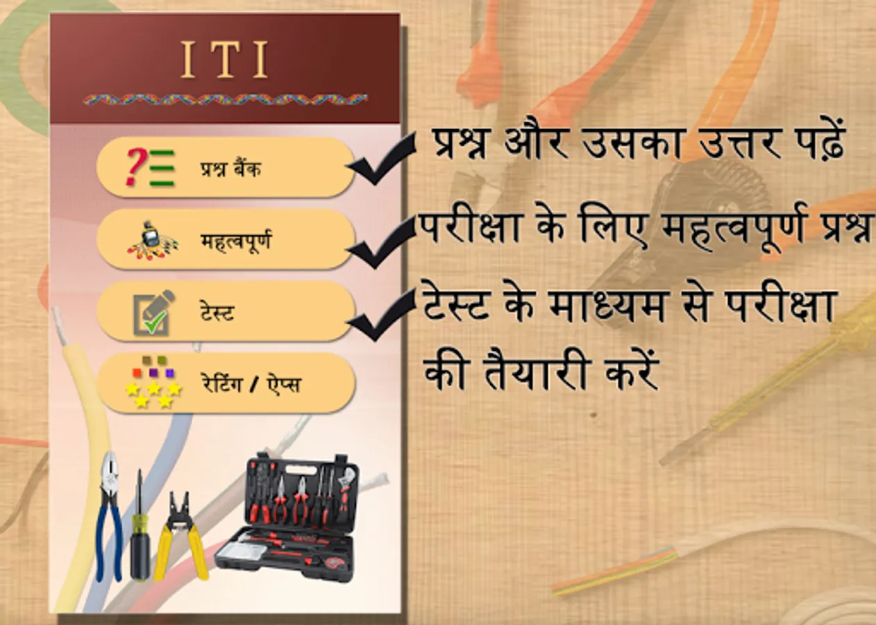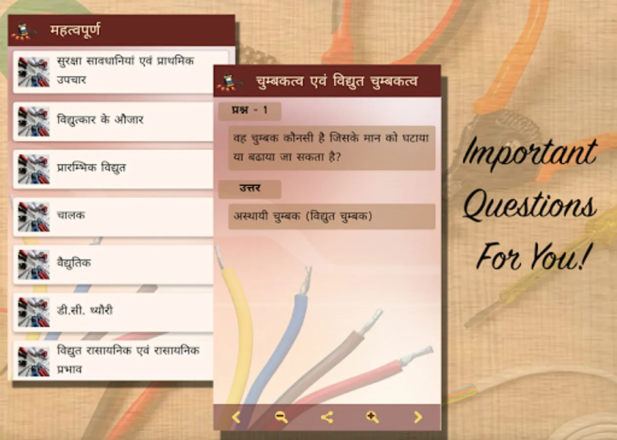 This is a complete ITI Electrician study application which covers important question answers of ITI Electrician and Wireman Trade for competitive and other examination in Hindi Language.