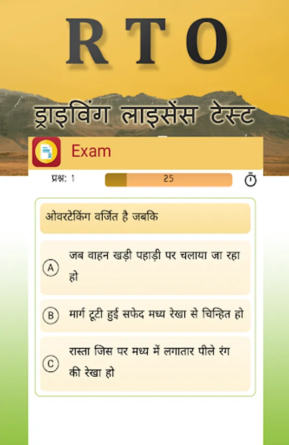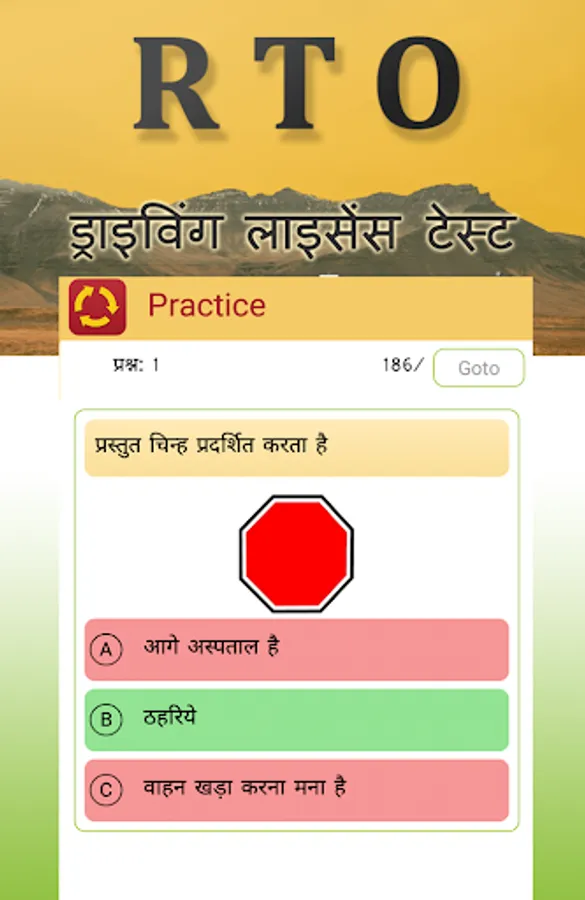 RTO Exam App is very useful to obtain driving license from RTO within India, App is available in Hindi and English language.