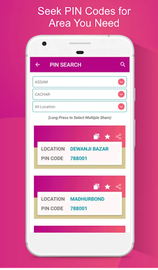 • In this All India pin code app, you can look for PIN code of any site with State, District and Location name.