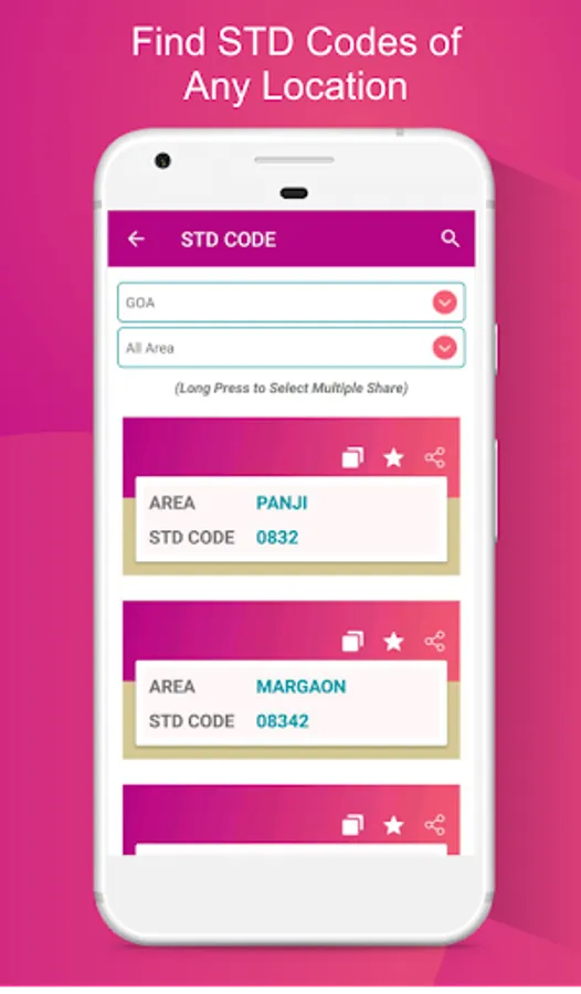 • You can seek for STD codes of any area with State and Area option via this STD codes of India app.