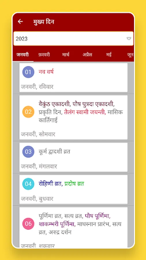 * In this 2023 hindu panchang calendar you can set reminders for all festivals.