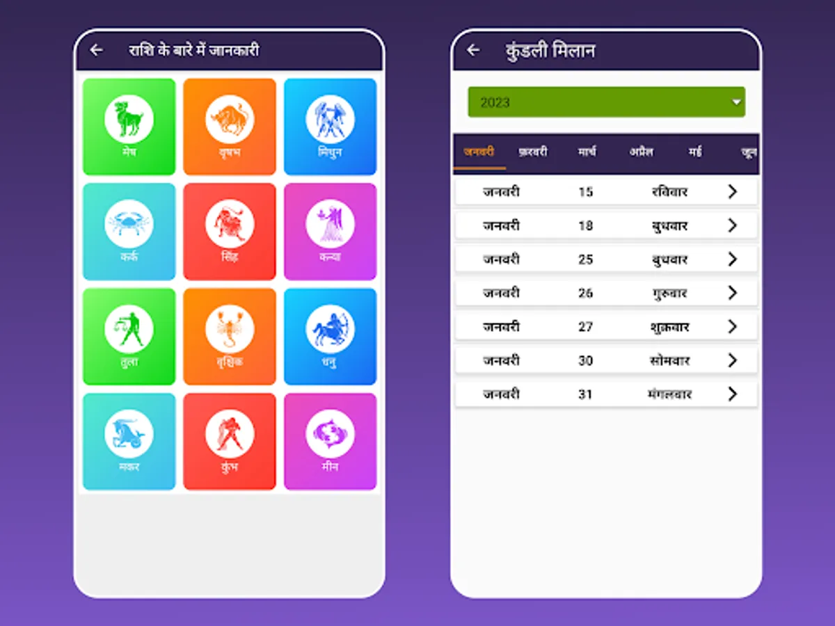 This kundali matching 2023 in hindi app contains 8 matching method followed by north indian astrology are