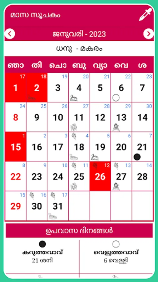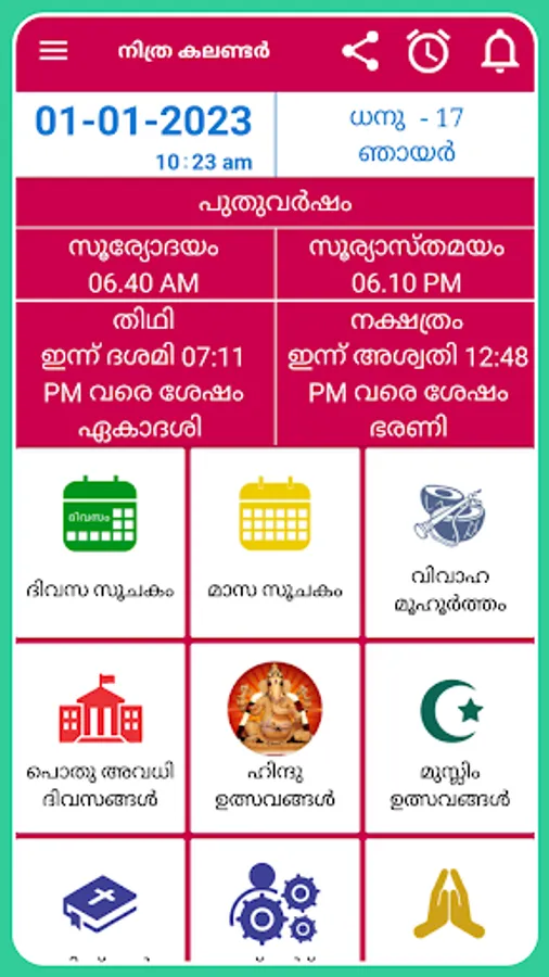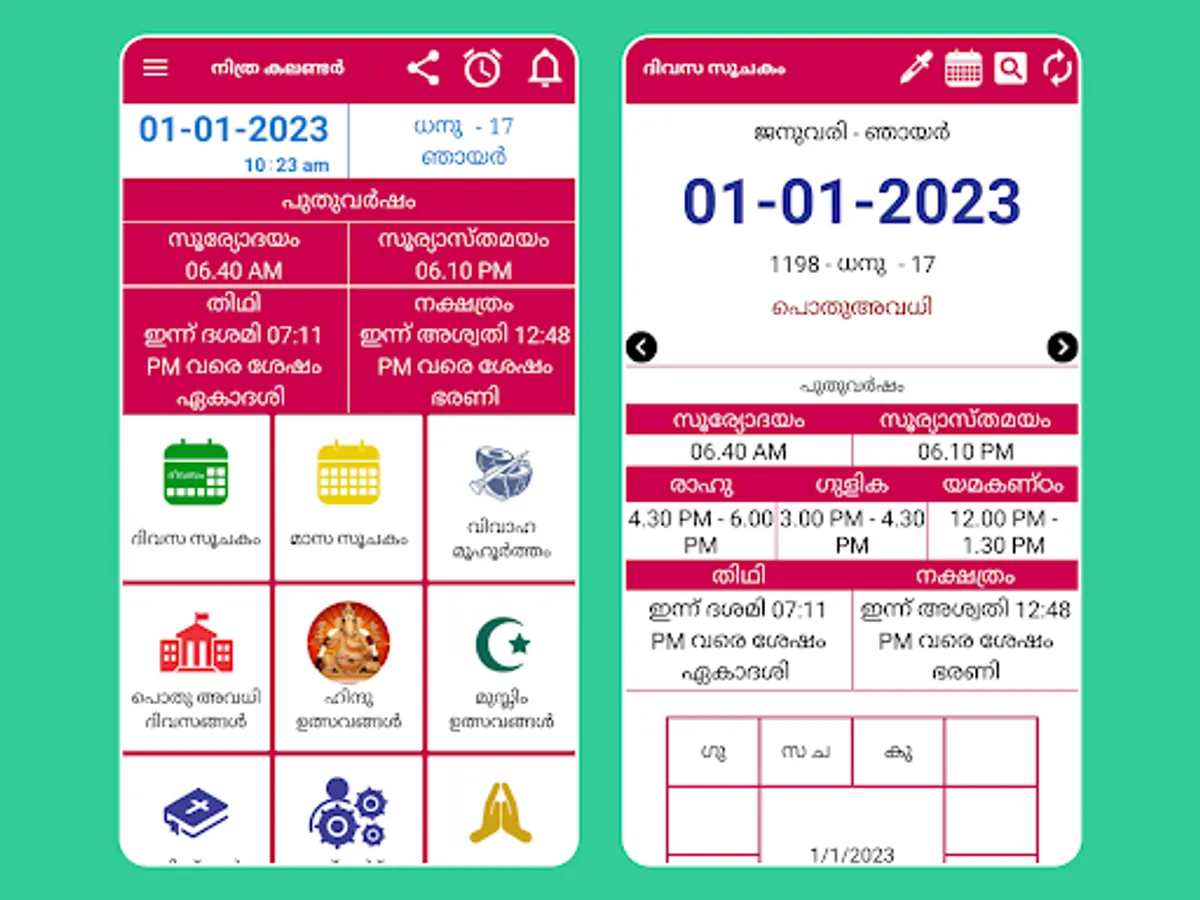 2023 Malayalam Calendar with 2023 Malayalam panchangam calendar app contains all details like 2023 holidays list, festival list, 2023 panchangam details, shubh muhurat days list for people speaking malayalam across the world.