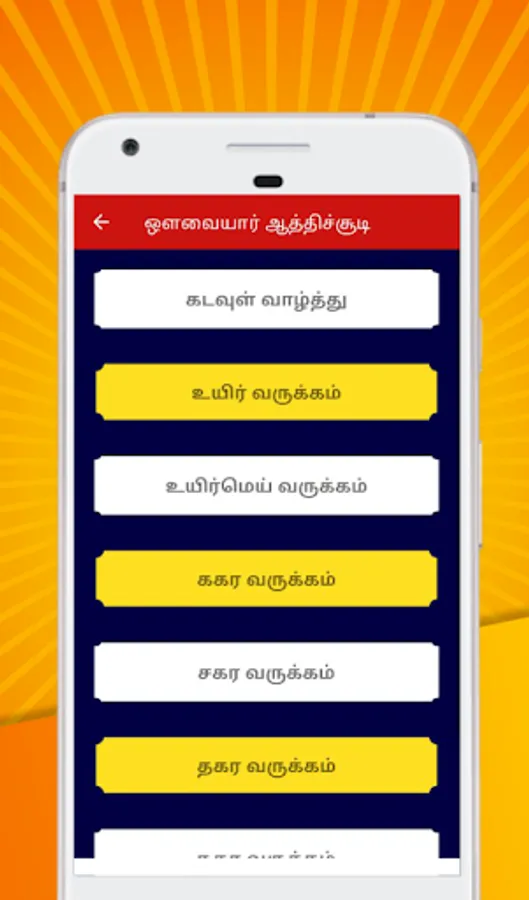 Aathichudi app – one-line quotations of athichudi written by Avvaiyaar. Each Athichudi line is explained with meaning in Tamil Language. Athichudi is one of the famous poem written by Avvaiyaar.