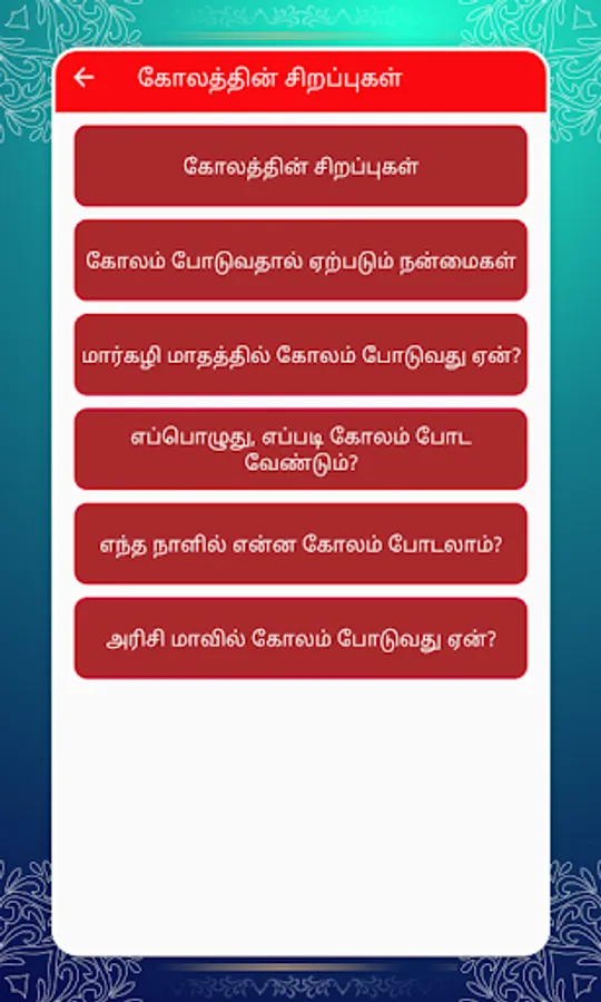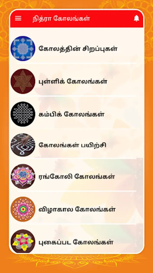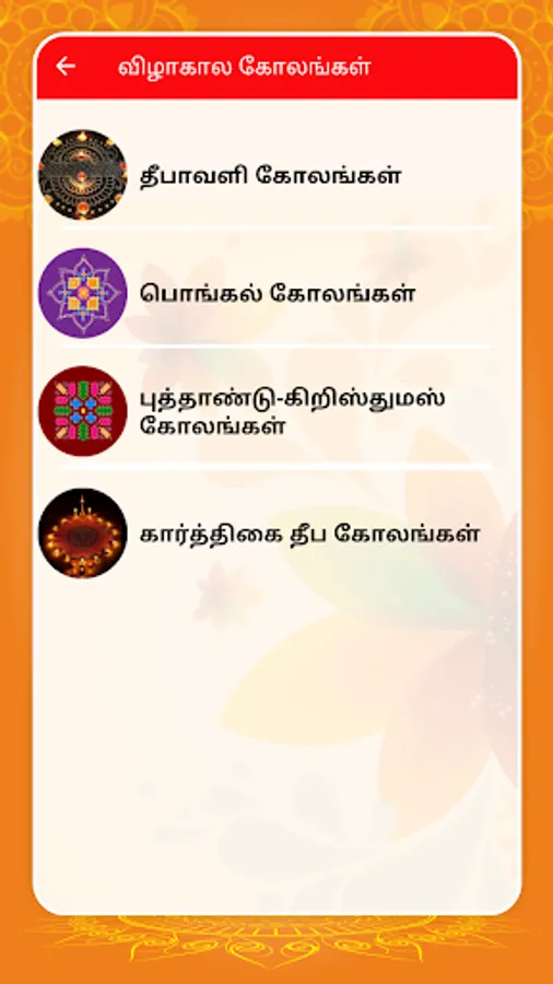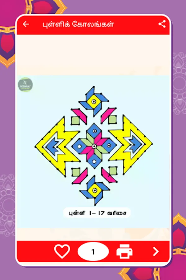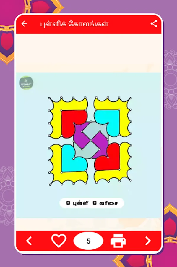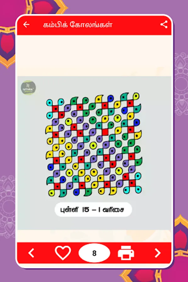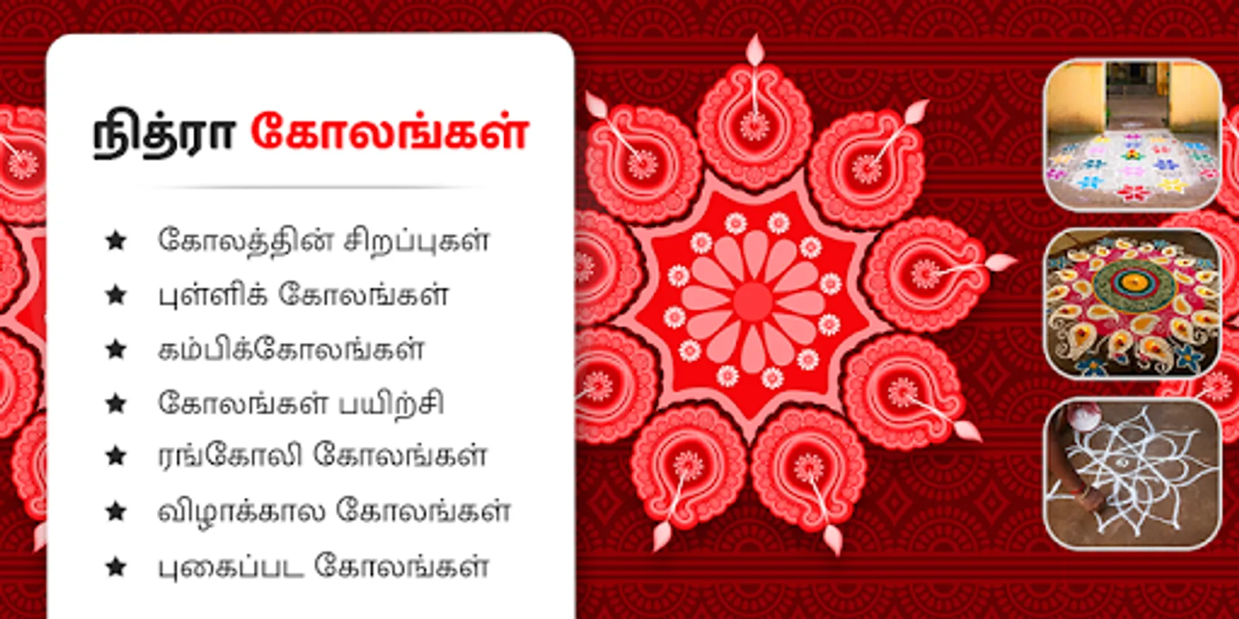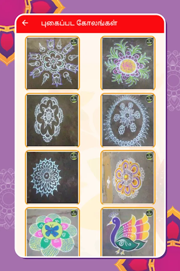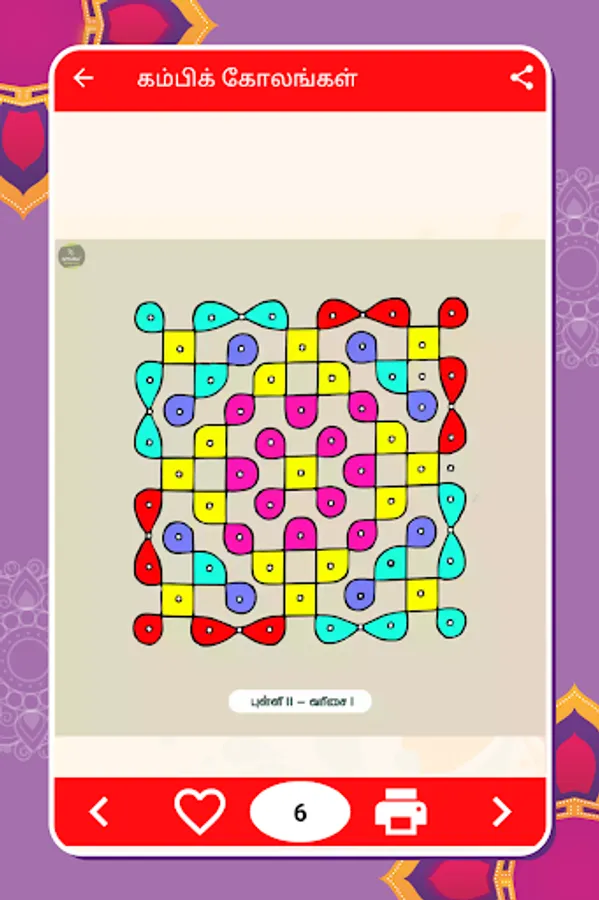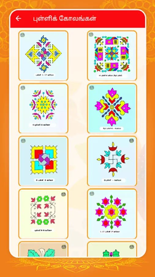 Kolangal app (கோலங்கள்) - free app to practice pulli kolam, kambi kolam and rangoli designs easily. This new Kolangal designs app consist of 250+ kolangal and it will be useful for beginners.